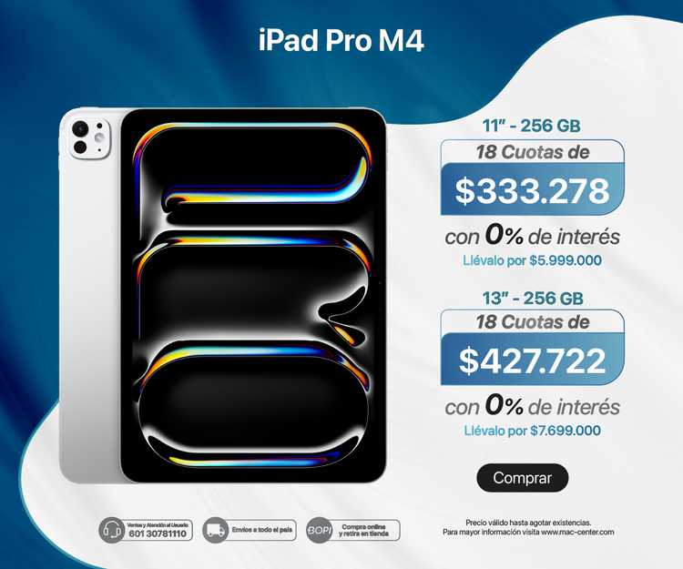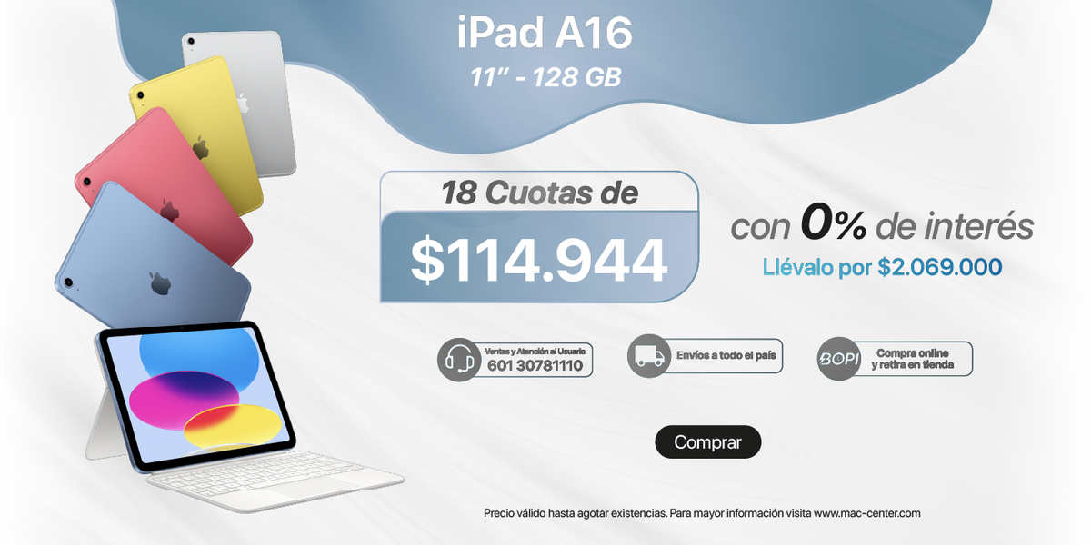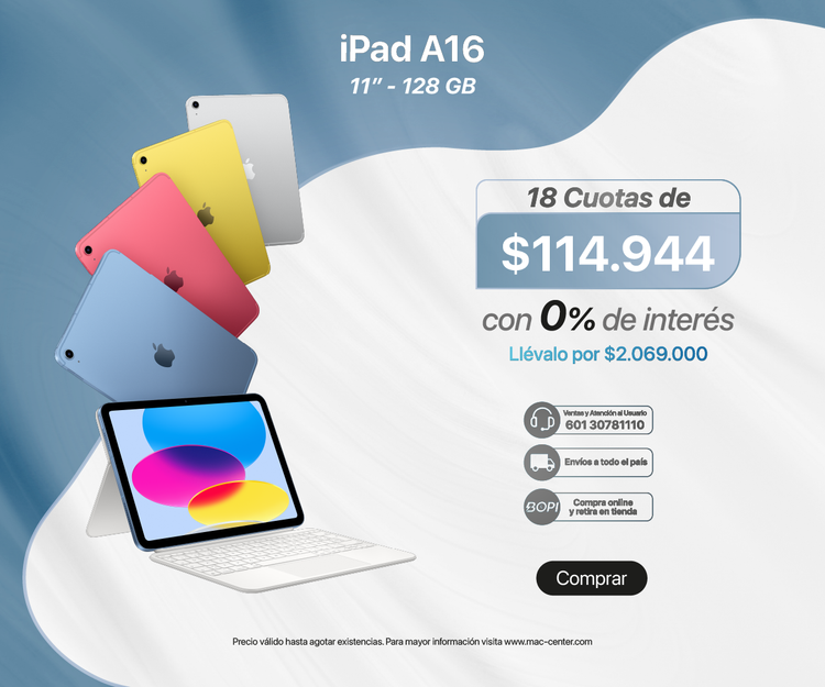 El precio de un iPad varía según el modelo, almacenamiento y conectividad. En Mac Center puedes encontrar opciones que se adapten a tu presupuesto y necesidades.