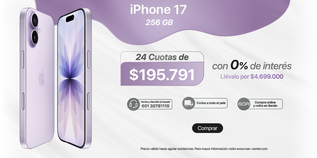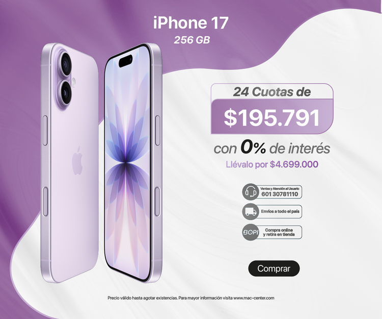 El iPhone 17 está disponible en colores negro, blanco, Lavender, Salvia y Mist Blue.