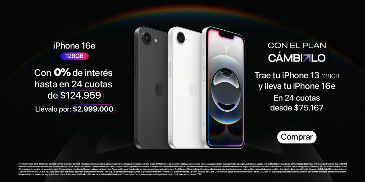 iPhone 16 Bajo de Precio, encuéntralo desde $4.289.000 con 0% de interés.