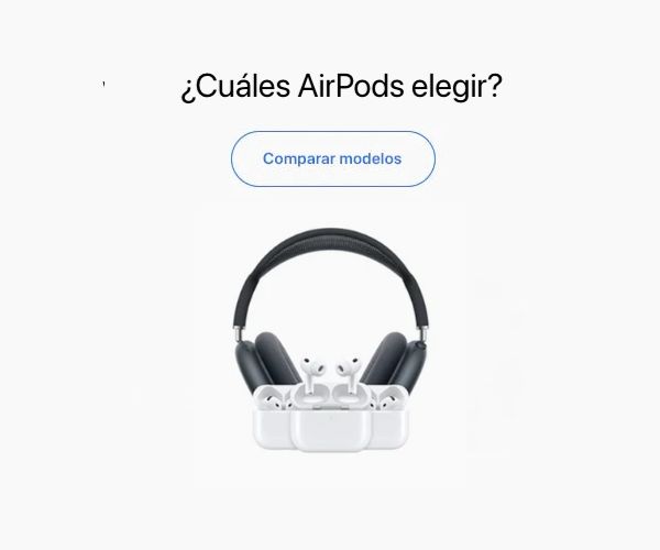 Apple ofrece diferentes modelos de AirPods para cada necesidad. Los audífonos inalámbricos AirPods brindan una conexión rápida y estable gracias a su chip H1. Los AirPods Pro 2 generación incorporan cancelación activa de ruido y modo Transparencia para una experiencia inmersiva. Por su parte, los AirPods Max combinan un diseño over-ear o diadema, con audio espacial y cancelación de ruido avanzada para un sonido envolvente.