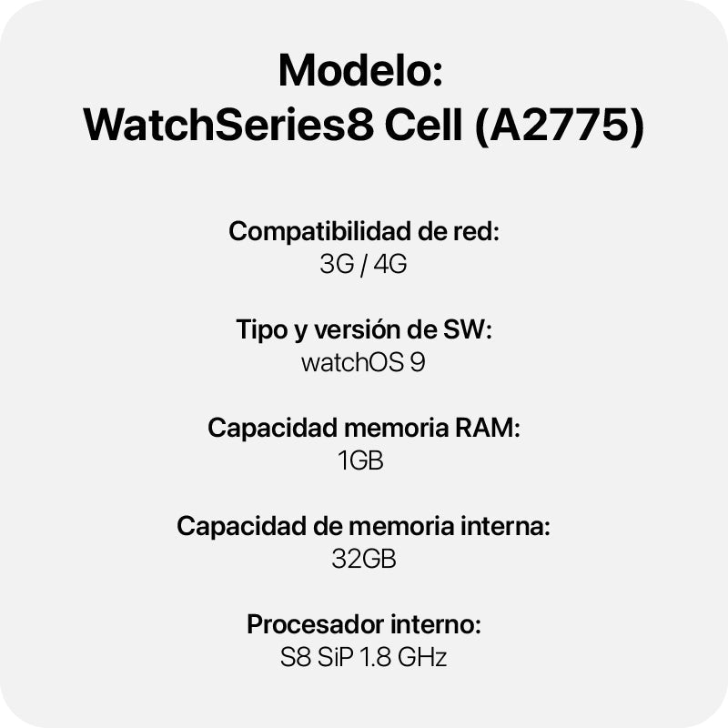 El Apple Watch Series 8 viene con apps y sensores de salud avanzados con los que puedes hacerte un electrocardiograma, medir tu frecuencia cardiaca y nivel de oxígeno en sangre, y registrar cambios de temperatura para obtener información relevante sobre tu ciclo menstrual. Además, incluye Detección de Choques, datos sobre las fases del sueño y métricas avanzadas de entrenamiento para ayudarte a llevar una vida más activa, saludable, segura y conectada.