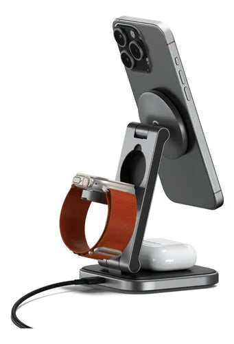 BASE DE CARGA SATECHI PLEGABLE 3 EN 1 QI2 MAGSAFE SPACE GRAY