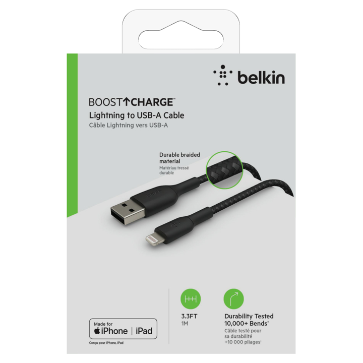 Cable Belkin USB-A a Lightning - 1M - Trenzado - Negro