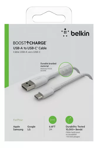 CABLE BELKIN BRAIDED USB-C/USB-A 2M WH